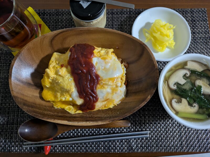久しぶりに食べたオムライスとお味噌汁の夜ごはん。いつも以上に感謝をしながら食べた、ある日の一人の夜ごはんです。